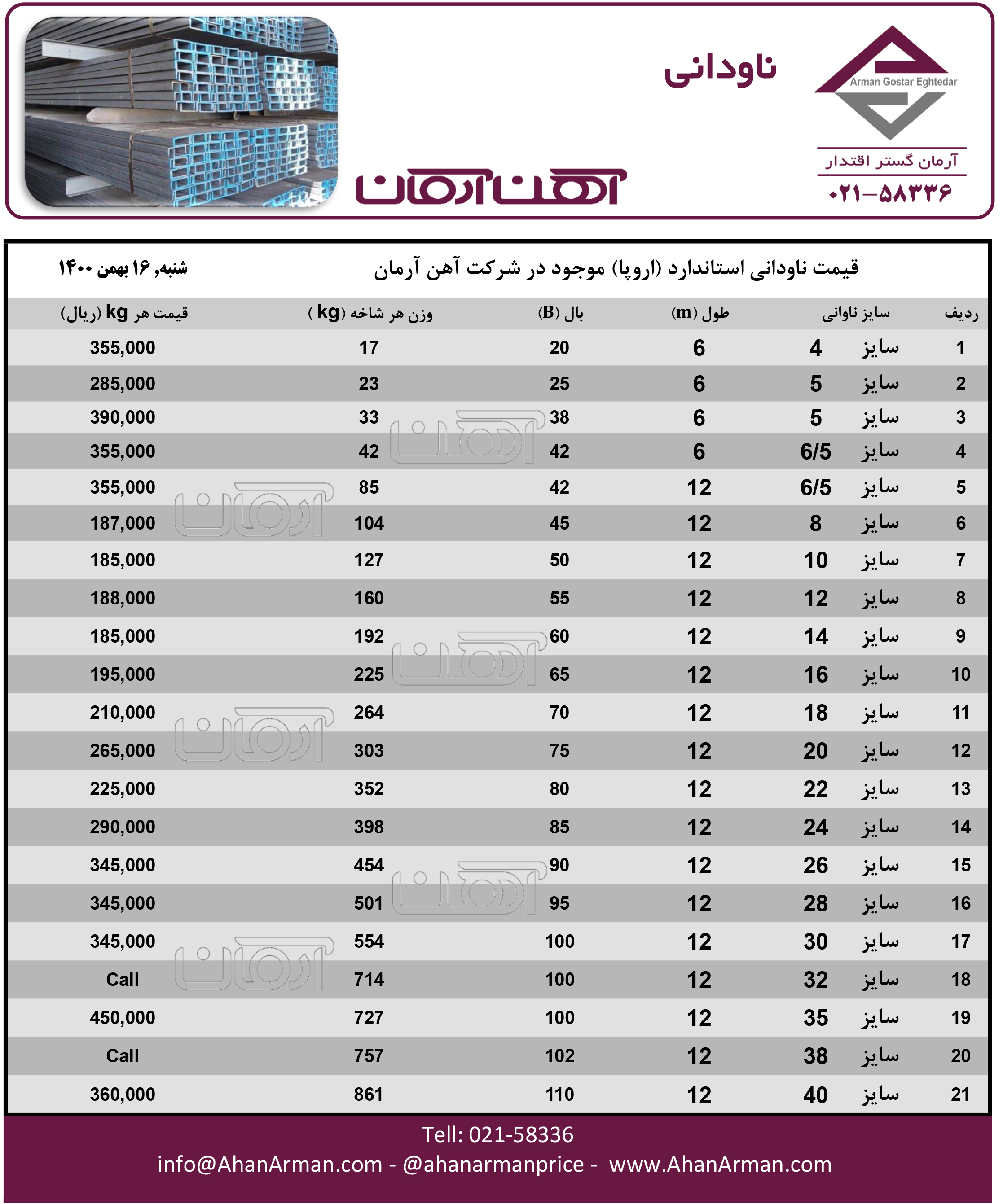 ناودانی ایرانی ☎️021-58336 🌐www.ahanarman.com 🆔 @ahanarmanprice https://t.me/AhanArmanPrice