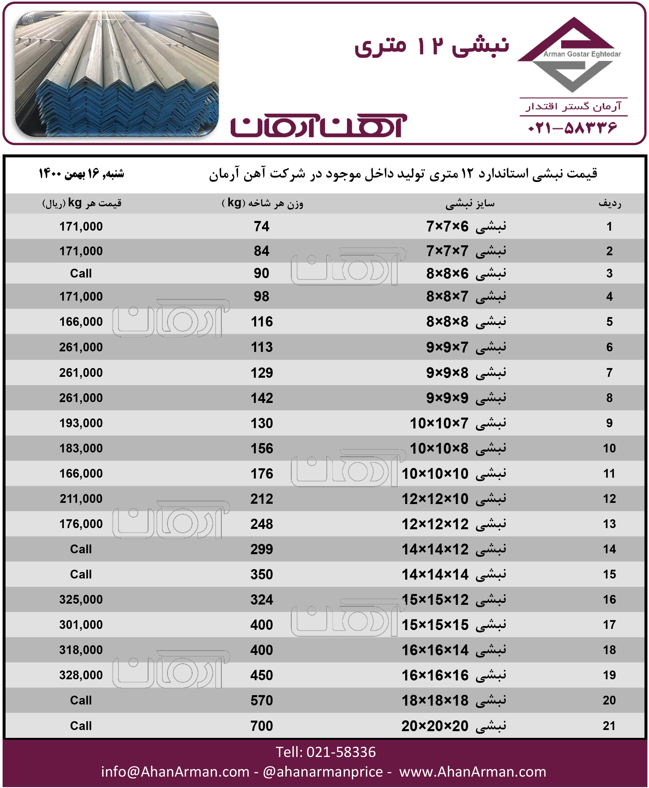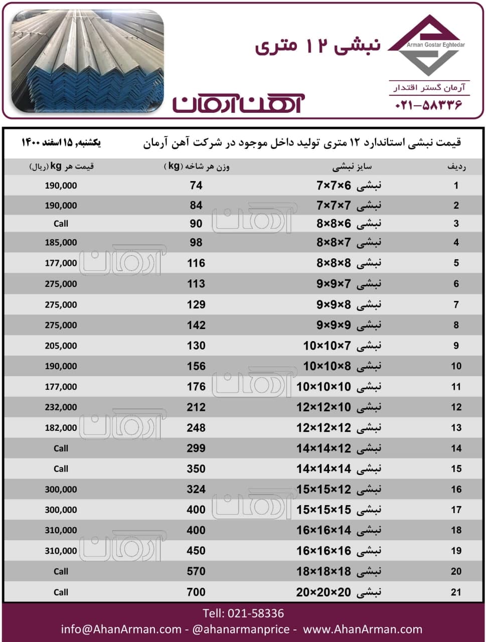 نبشی 12 متری ☎️021-58336 🌐www.ahanarman.com 🆔 @ahanarmanprice https://t.me/AhanArmanPrice