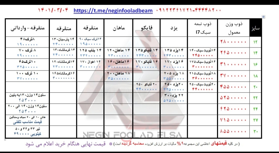 کلیه قیمت ها با ارائه فاکتور رسمی و با احتساب 9درصد مالیات بر ارزش افزوده میباشد.