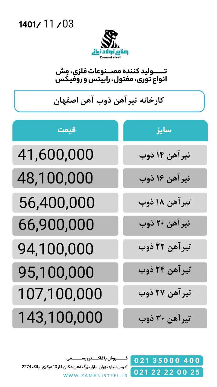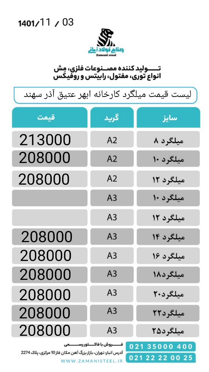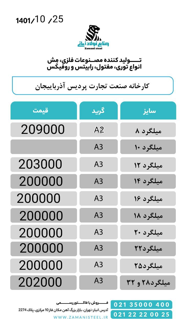 قیمتهای فولاد زمانی (صنایع فولاد زمانی )
