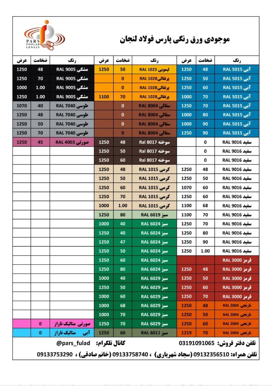 اعلام موجودی ورق گالوانیزه و رنگی