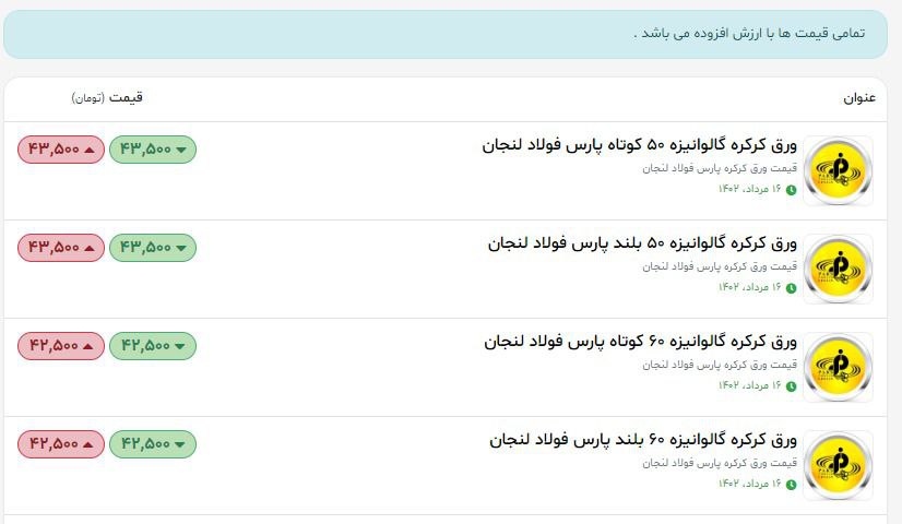 💠شرکت تولیدی پارس فولاد لنجان 🔘 گالوانیزه ضخامت ۵۰ عرض ۱۰۰۰ كاشان (3تن) 🔘 گالوانیزه ضخامت ۶۰ عرض ۱۰۰۰ كاشان 🔘 گالوانیزه ضخامت ۶۰ عرض ۱۲۵۰ كاشان 🔘 گالوانیزه ...