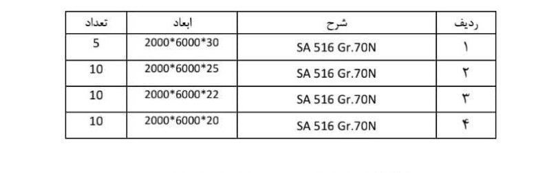 لیست ورق گرم زیر را خریداریم 12*1.5*8 .........7 برگ 12*2*8 .............3برگ 12*2*12 ........1 برگ 12*1.5*12 ........4 برگ 6*1.5*14 ........1برگ