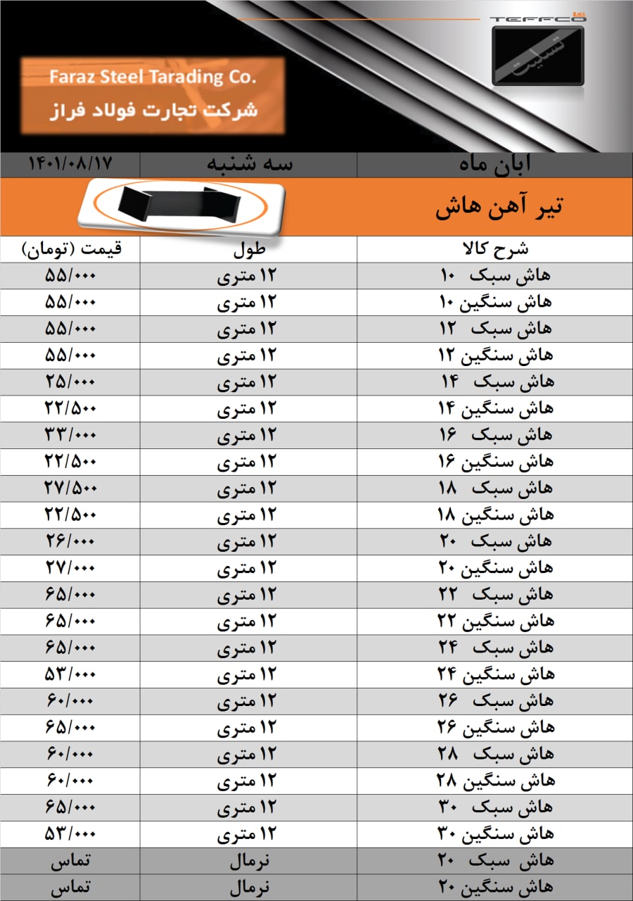 لیست موجودی و قیمت ورق سیاه مبارکه