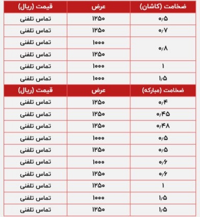اعلام موجودی ورق گالوانیزه ضخیم و رنگی مبارکه