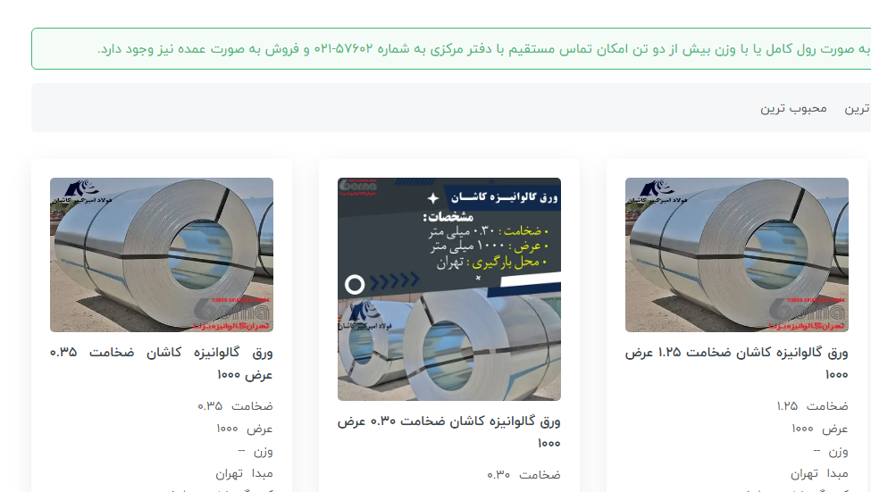 #تهران_گالوانیزه_برنا 🔺 فروش ویژه کالاهای زیر: 0/40 عرض 1250 کاشان 0/45 عرض 1250 کاشان 0/70 عرض 1250 کاشان 0/80 عرض 1250 کاشان 1/00 عرض 1250 کاشان 0/37 عرض 1 ...