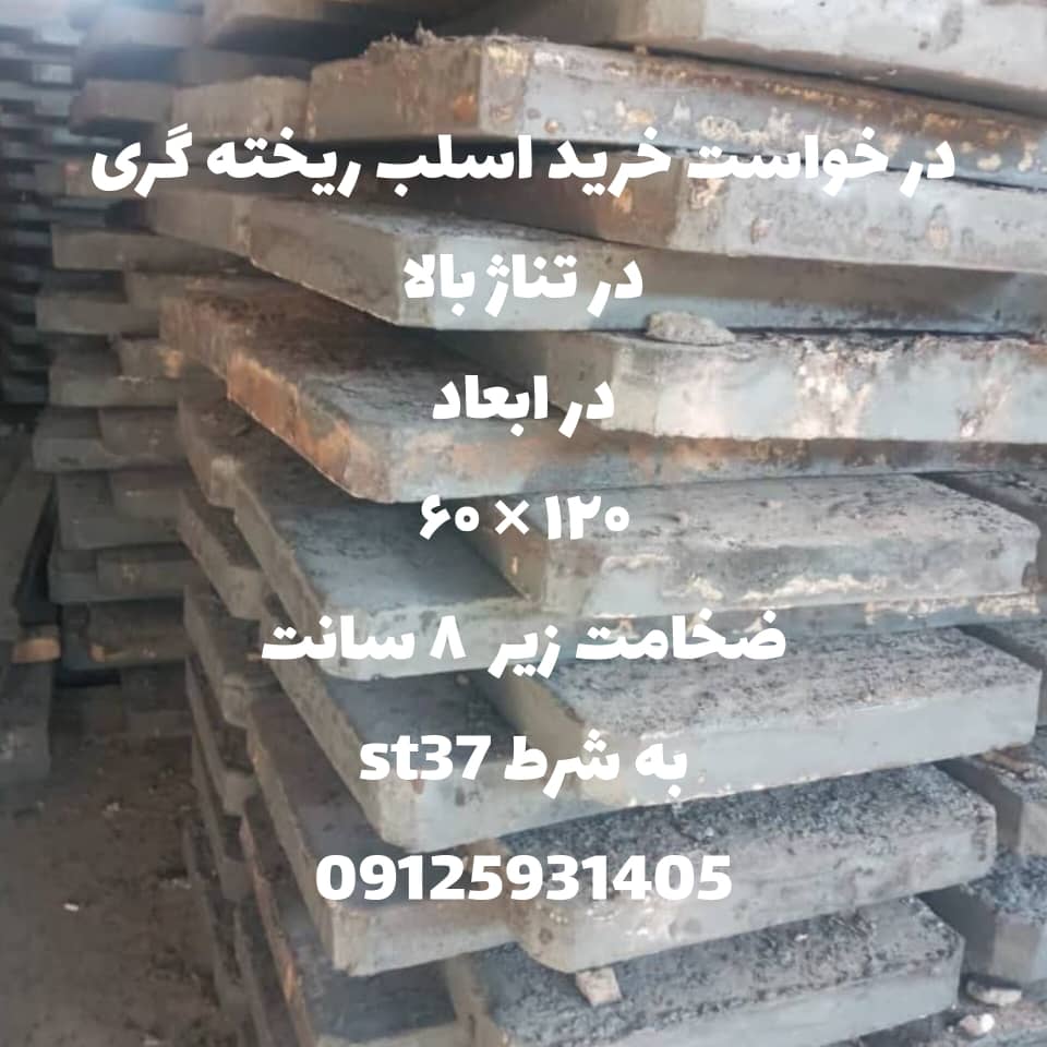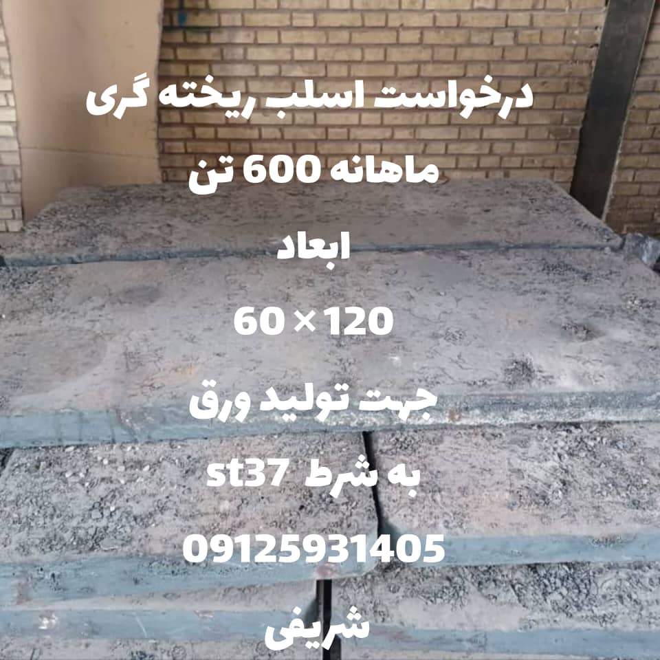 اسلب ریخته گری ابعاد 150*125 ضخامت 10 تا 15 سانت به شرط ST37 جهت تولید ورق روزانه 150 تن خریداریم.