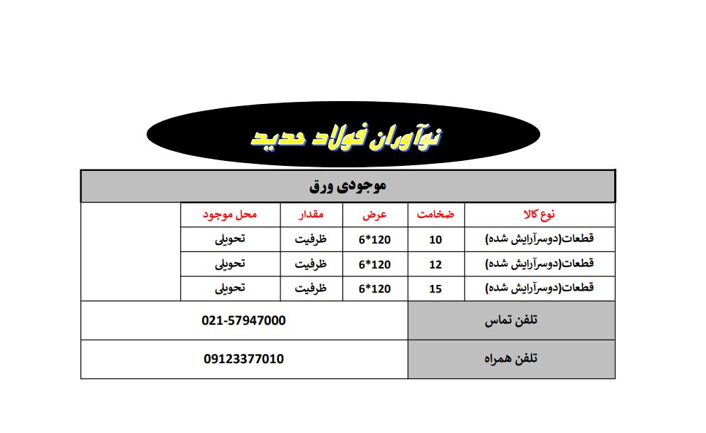 صورت بارهای نوآوران فولاد حدید . فولاد نورا