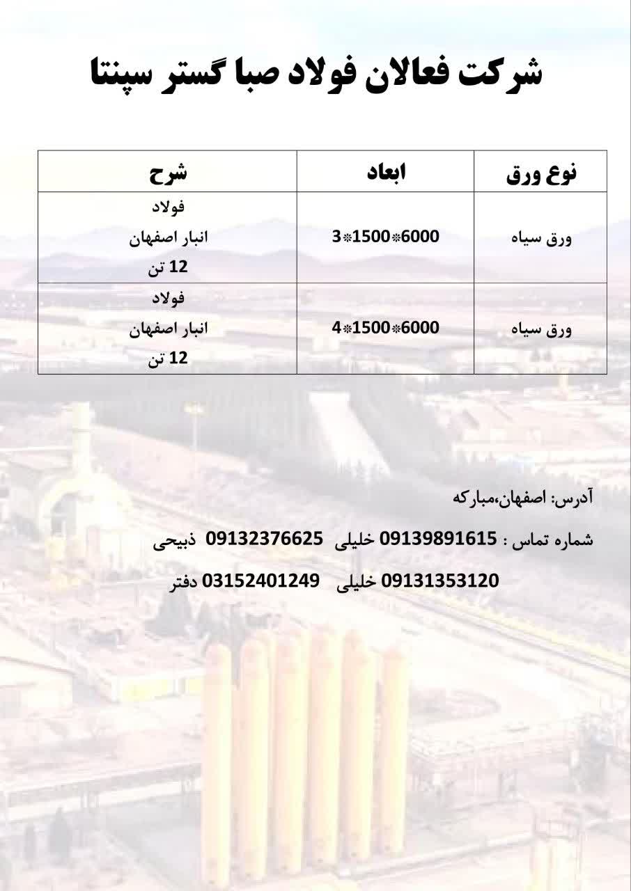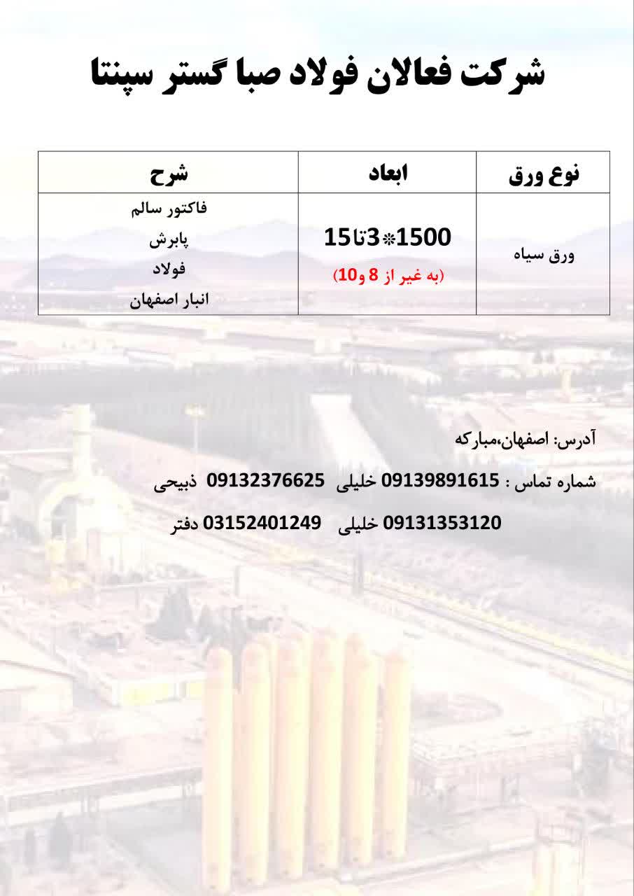#فعالان_فولاد_صبا_گستر_سپنتا 🔺تامین کننده تمامی مقاطع آهنی و ورق های فولادی خدمات ما ✅بازرگانی تمامی مقاطع فولادی ✅کلیه خدمات برش ✅حمل و نقل و لجستیک ✅انب ...