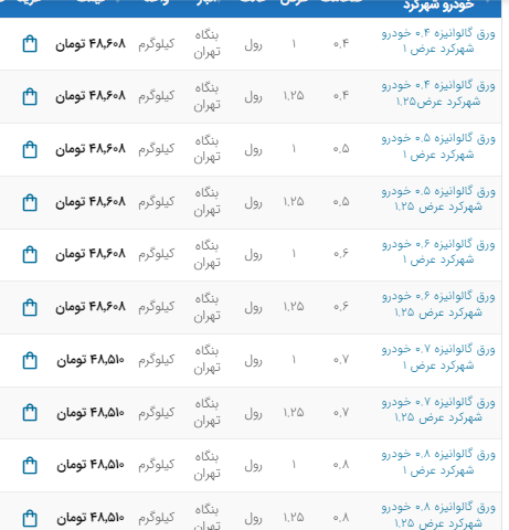 اعلام موجودی تولیدات و مصنوعات فلزی