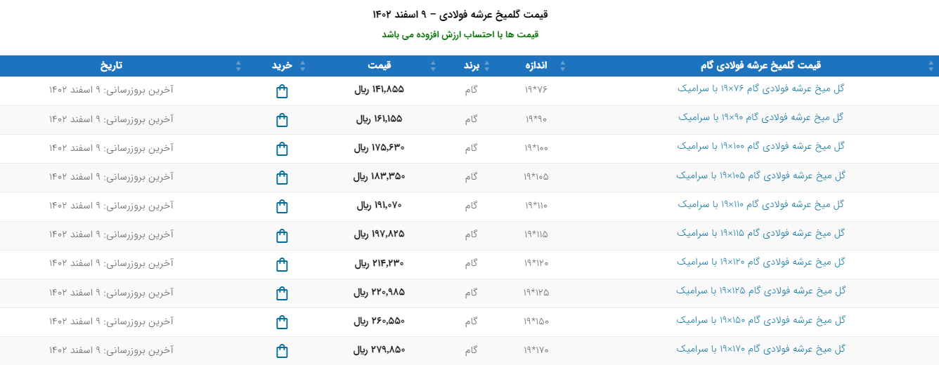 اعلام موجودی ورق گالوانیزه