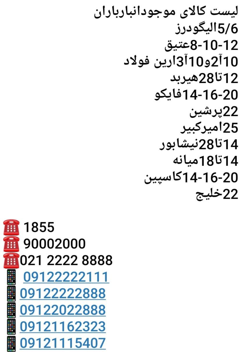 💠 #شرکت_آرتا_تجارت_افق_باران #الیگودرز 6/5الیگودرز #عتیق 8عتیق 10عتیق 12عتیق #آرین_فولاد 10ارین فولاد 10آ3ارین فولاد #نیشابور 14نیشابور 16نیشابور 18نیشابور 20 ...