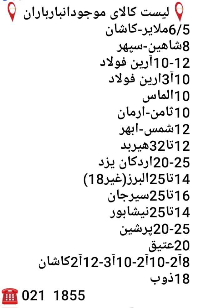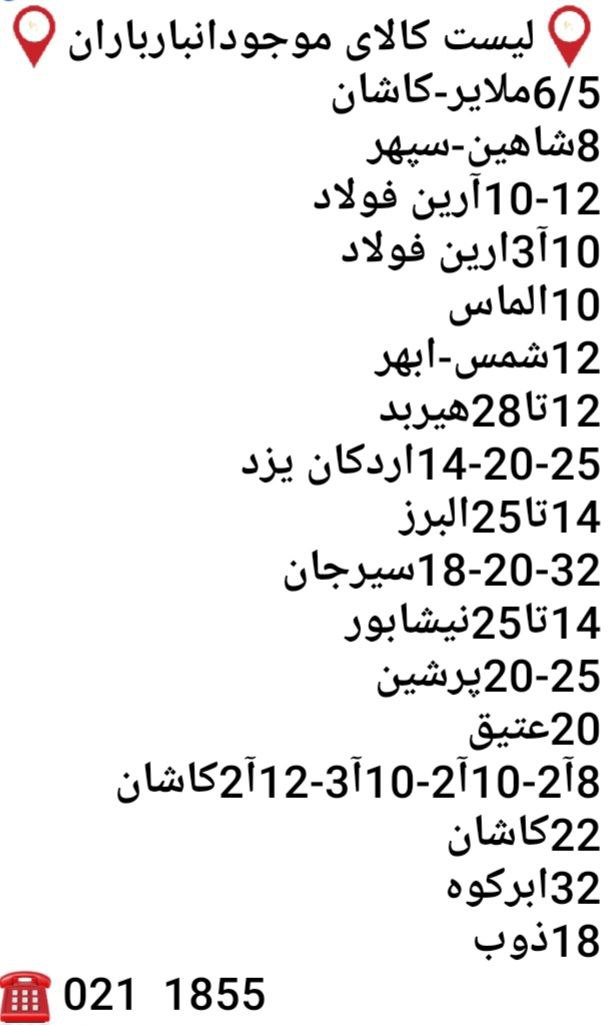 #فولاد_باران ↖️کلیه اجناس فوق موجوددرانبار باران میباشد↖️ #شرکت_آرتا_تجارت_افق_باران فروش تخصصی #میلگرد در انبار تهران و کارخانه ☎️ 021 1855 ☎️ 90002000 1402/ ...
