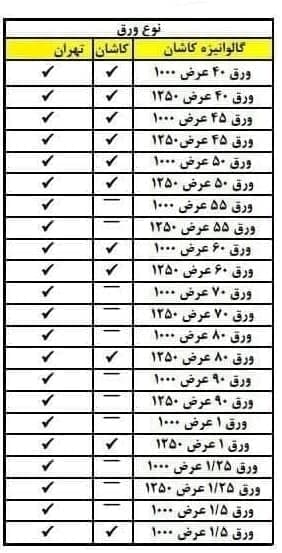 ♦️ورق گالوانیزه تاراز🔸 ————————————-————— 🟡 50*1000 1250 🟡 60*1000 1250 🟡 1*1000 1250 🟡1/25*1000 1250 🟡 1/5*10 ...