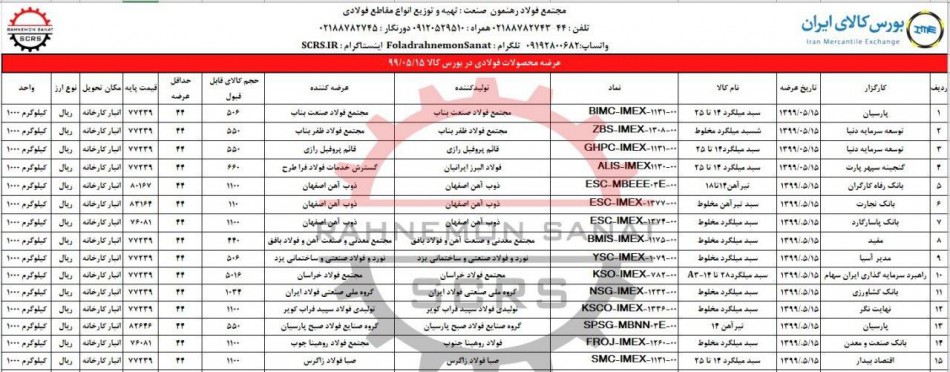 بارگیری از انبار افزایش 400 تومان A3: میلگرد 12 9800 تومان میلگرد 14 9800 تومان میلگرد 16 9800 تومان میلگرد 18 9800 تومان میلگرد 20 9800 تومان میلگرد ...