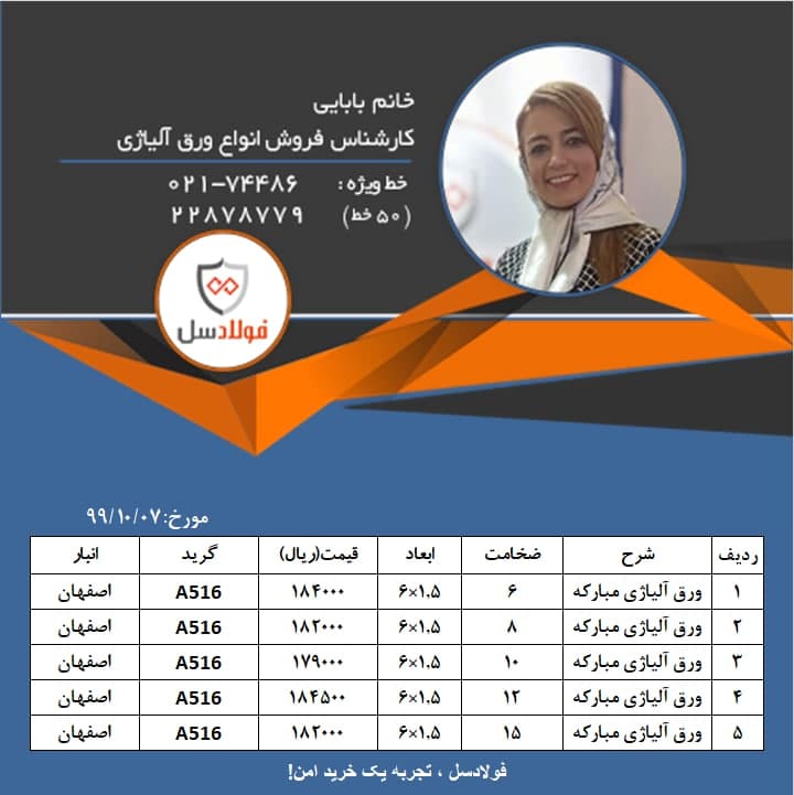 [ Photo ] #فولادسل #ورق_آلیاژی کارشناس فروش: خانم بابایی تماس: 09919597404 شرکت: 02174486 داخلی 103