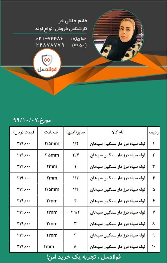 لوله سیاه درزدار سنگین سپاهان کارشناس فروش :مهدیس جلایی فر شماره همراه:09919597402 تماس:0217 4486 داخلی 105