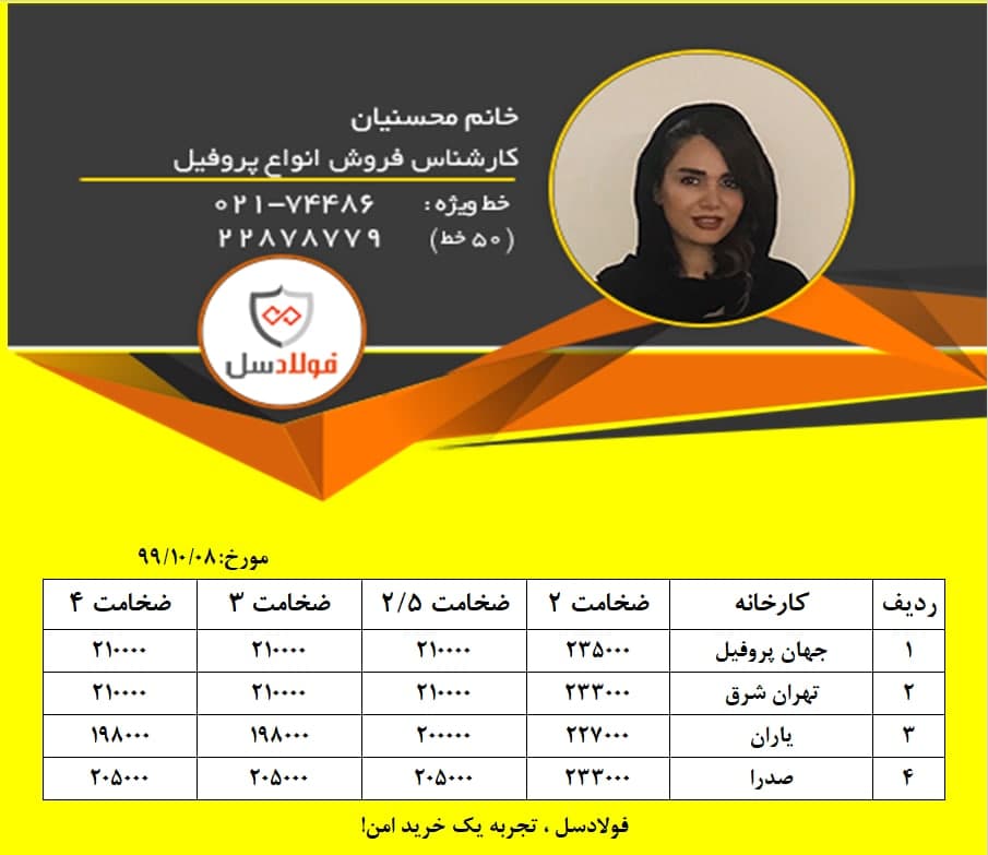 #قوطی #پروفیل مشاور فروش: رشیدی شماره تماس:02174486 داخلی 125 برای مشاهده قیمت لحظه ای پروفیل روی لینک زیر کلیک کنید. قیمت روز پروفیل ساختمانی