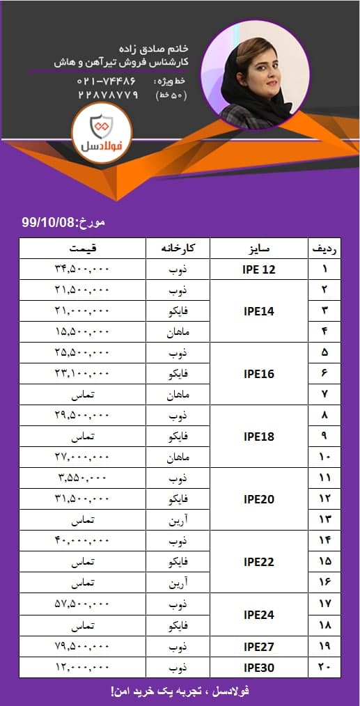 #تیرآهن #فولادسل مشاور فروش: صادق زاده داخلی:110 شماره تماس: 09919597414 برای مشاهده لحظه ای قیمت روی لینک زیر کلیک کنید قیمت روز تیرآهن