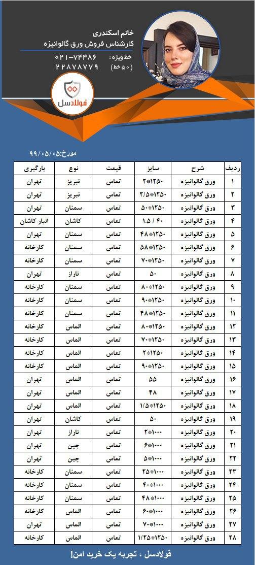 #ورق_گالوانیزه #فولادسل کارشناس فروش:اسکندری شماره تلفن:02174486 داخلی107 شماره تماس:09919597412 @fooladsell برای مشاهده قیمت های لحظه ای انواع ورق گالوانیزه ب ...