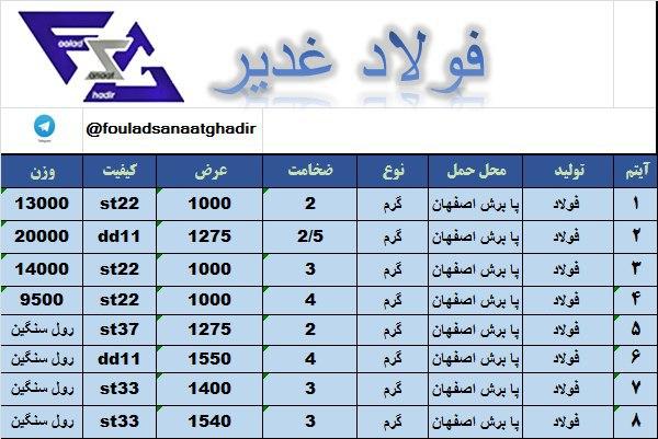 کویل گرم 8*1200 کیفیت st33 پابرش حومه تهران کویل گرم 7.6*1219 کیفیت st37 پابرش اصفهان کویل گرم 5.4*1400 کیفیت st37 پابرش اصفهان ورق گرم 6*1150*6000 کیفیت st33 ...
