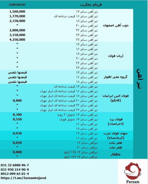 فرنام تجارت :موجودی میلگرد ابرکوه سایز ۱۰ الی ۳۲ کارخانه کلاف ۶.۵ ۱۰۰۸ نطنز انبار اصفهان کلاف ۶.۵ ۱۰۰۸ نطنز انبار تهران کلاف ۶.۵ ۱۰۰۸ نطنز کارخانه کلاف ۵.۵ ...