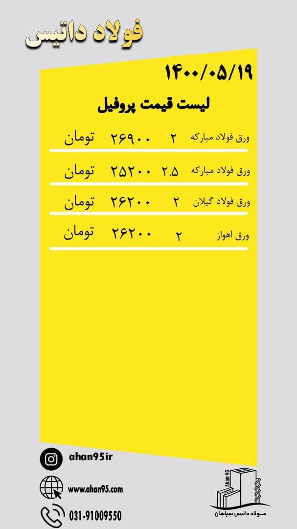 📆سه شنبه 1400/05/19 #پروفیل 📈 100 تومان افزایش قیمت ❗️بارگیری از کارخانه ❗️ ☎️ 031-91009550 ☎️ 09136355004 داخلی 200 و 201