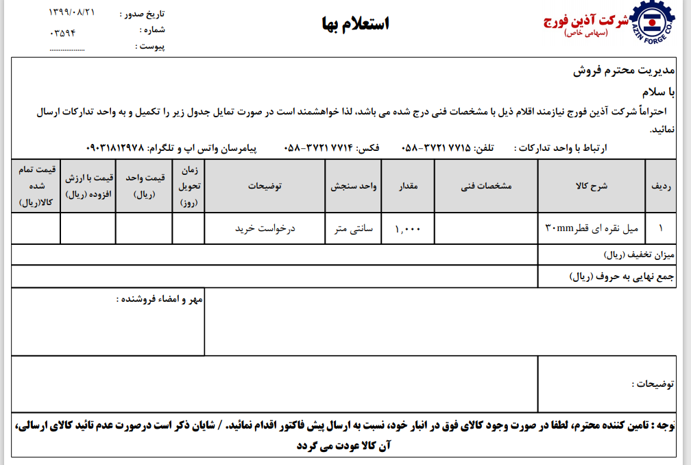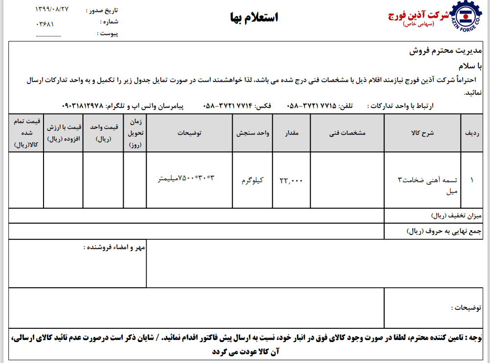 آذین فورج 05837217715 خراسان شمالی. اسفراین https://www.azin-forge.ir/ خریدار تسمه آهنی به مقدار 22000 کیلوگرم.