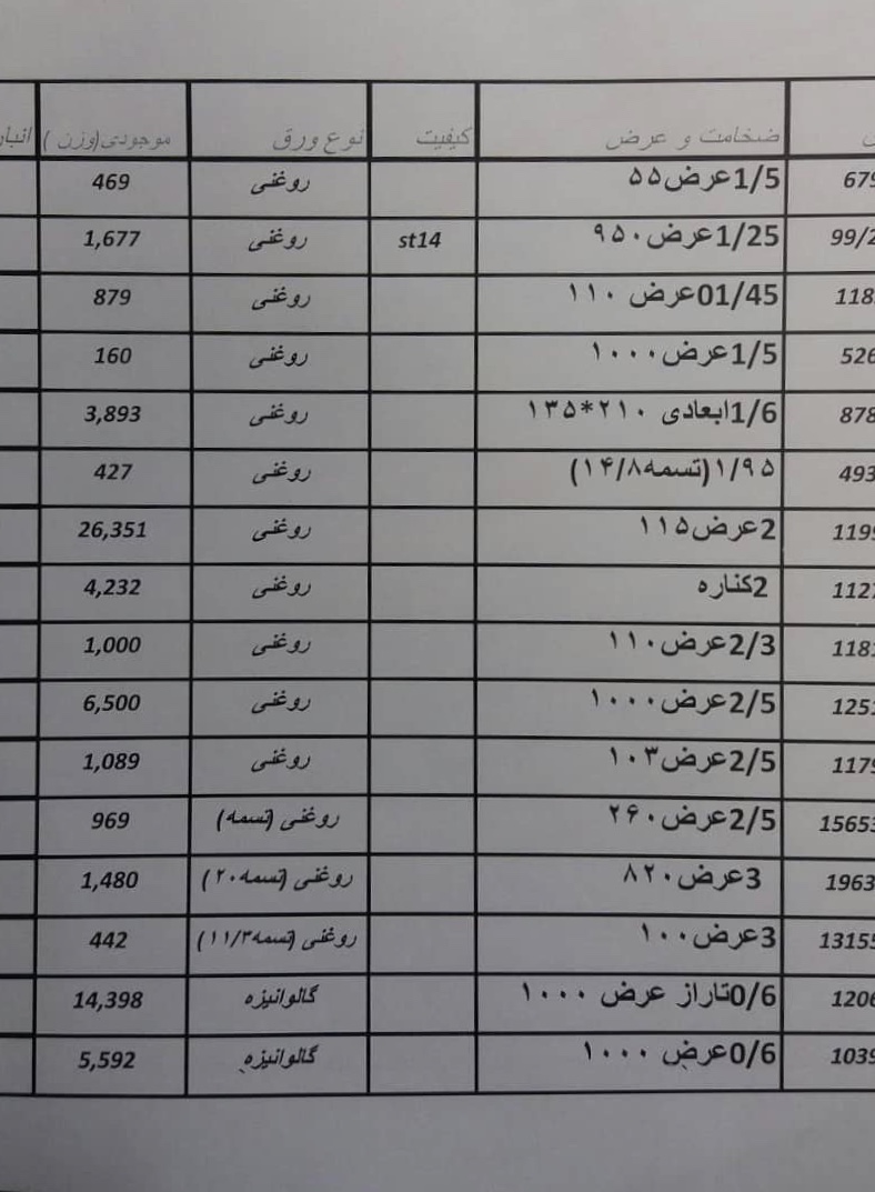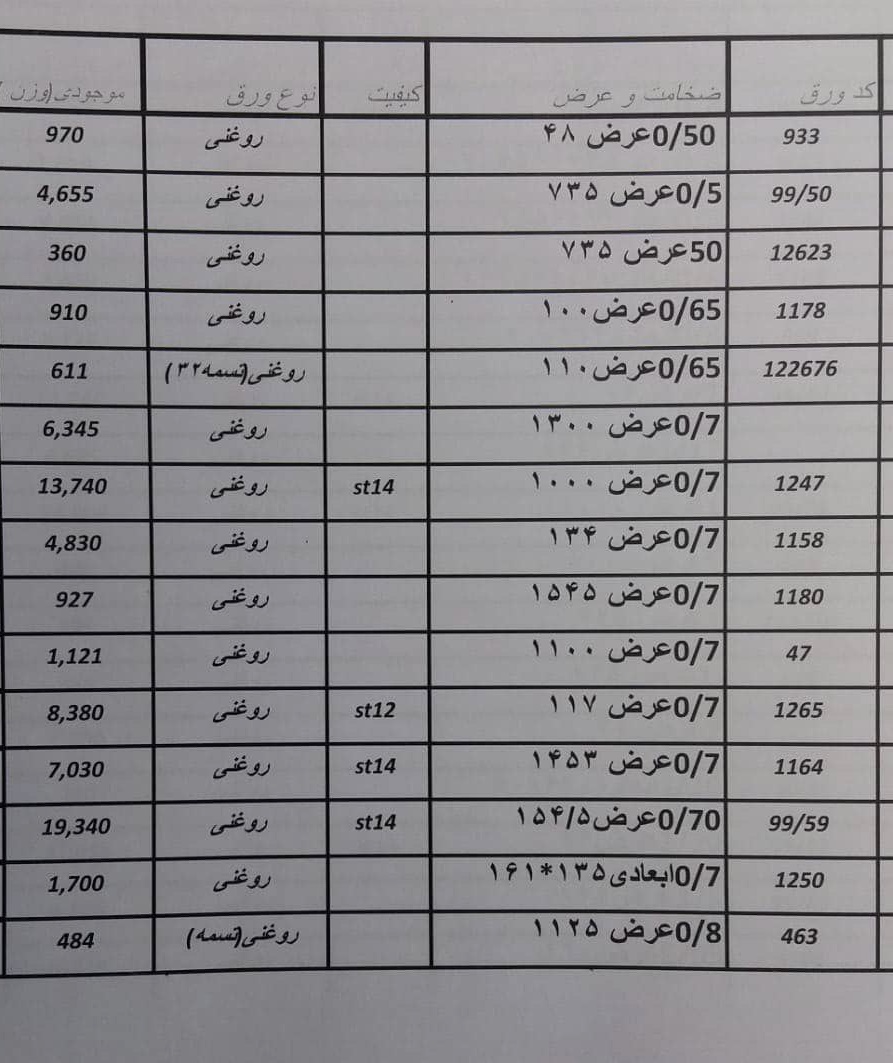 ورق روغنی ۲.۵ عرض ۱۰۰۰ و ۳ عرض ۱۰۰۰ ظرفیت موجود میباشد مبارکه st14 09121393766 افشاری