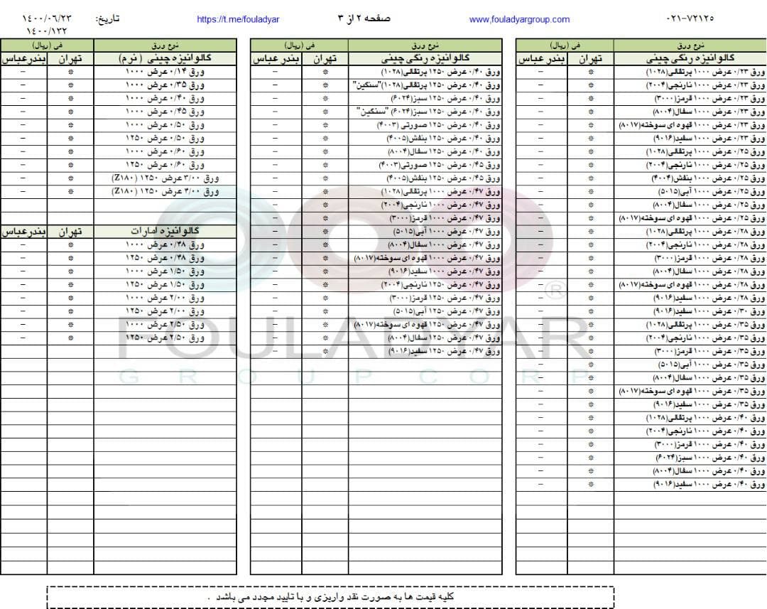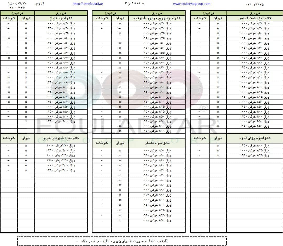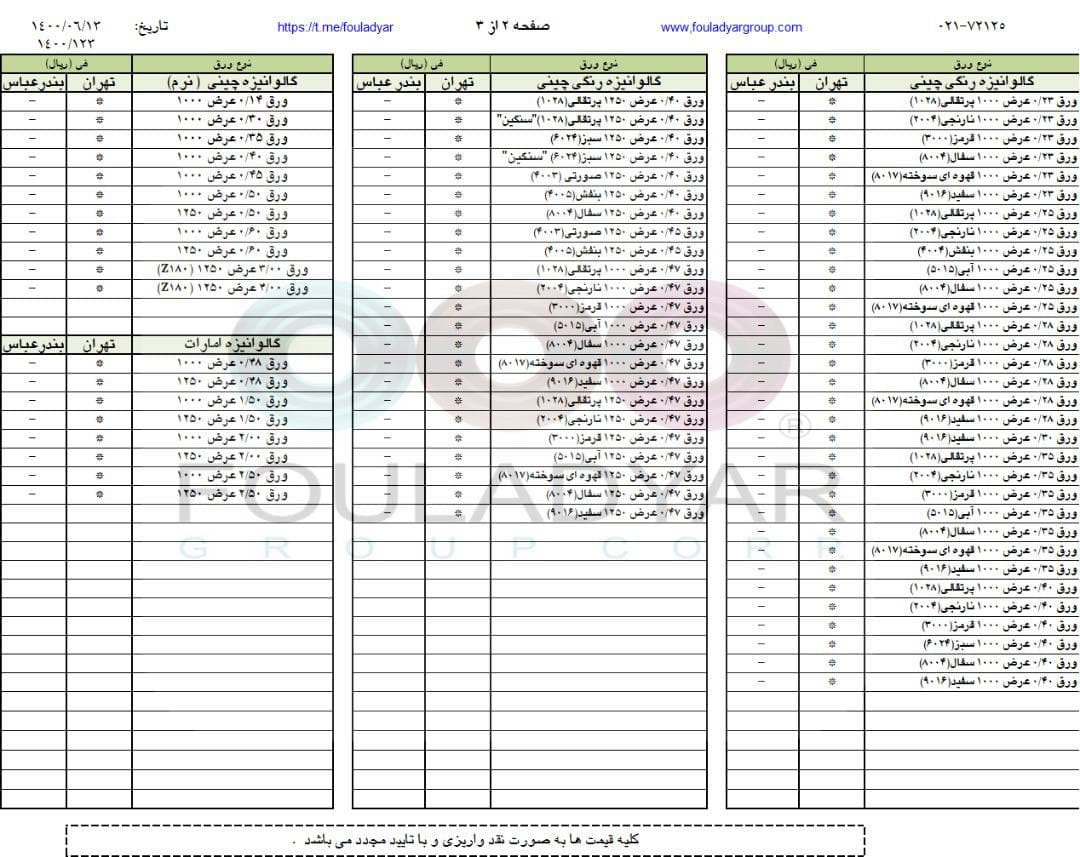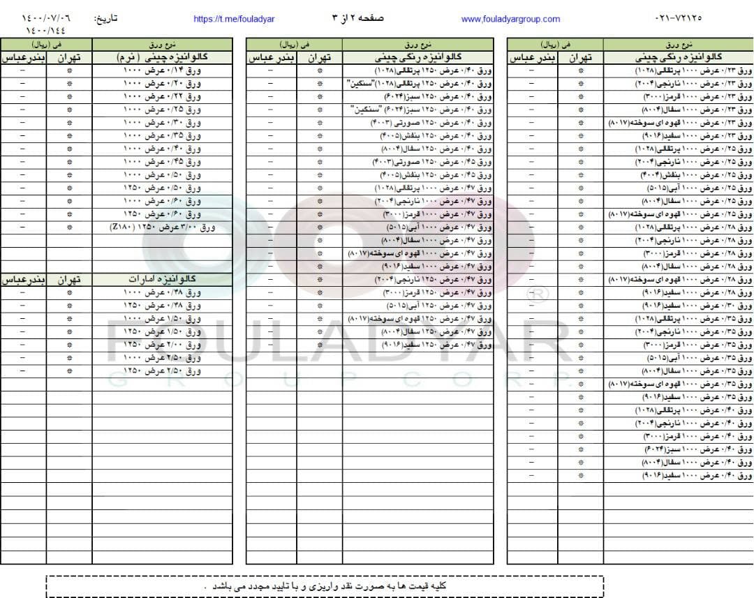 #گروه_شركتهاي_فولاديار 🔸بزرگترین عرضه کننده ورقهای سرد،گالوانیزه و رنگی ☎️021-72125 🌐http://www.fouladyargroup.com/ 🆔https://t.me/fouladyar https://foolad24 ...