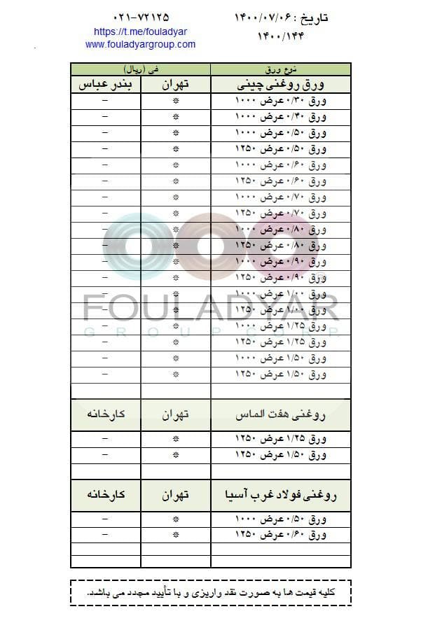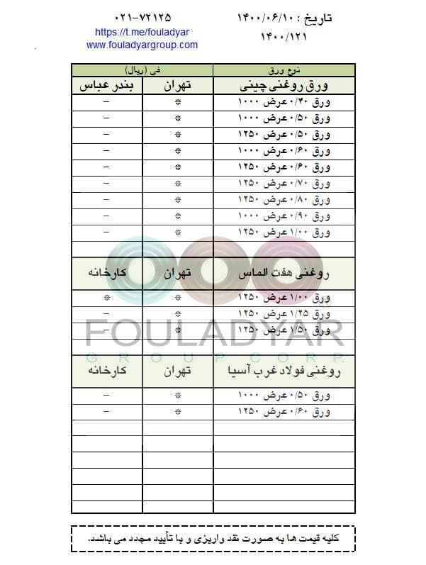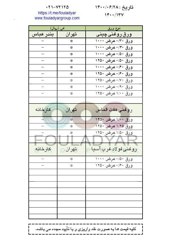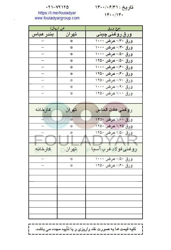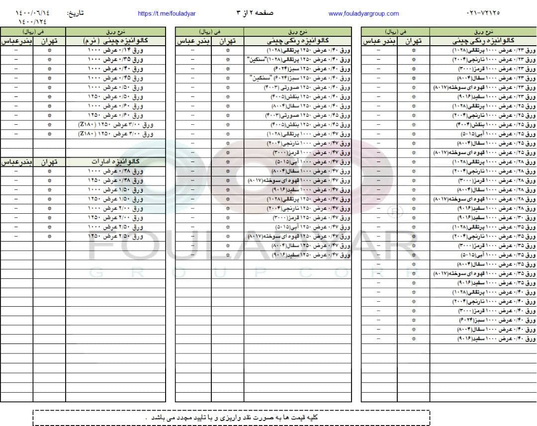 #گروه_شركتهاي_فولاديار 🔸بزرگترین عرضه کننده ورقهای سرد،گالوانیزه و رنگی ☎️021-72125 🌐http://www.fouladyargroup.com/ 🆔https://t.me/fouladyar https://foolad24 ...