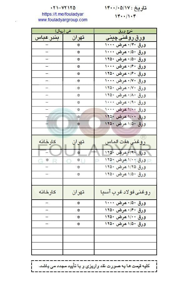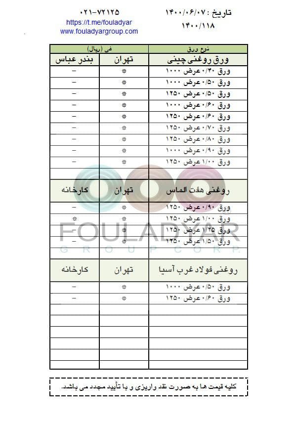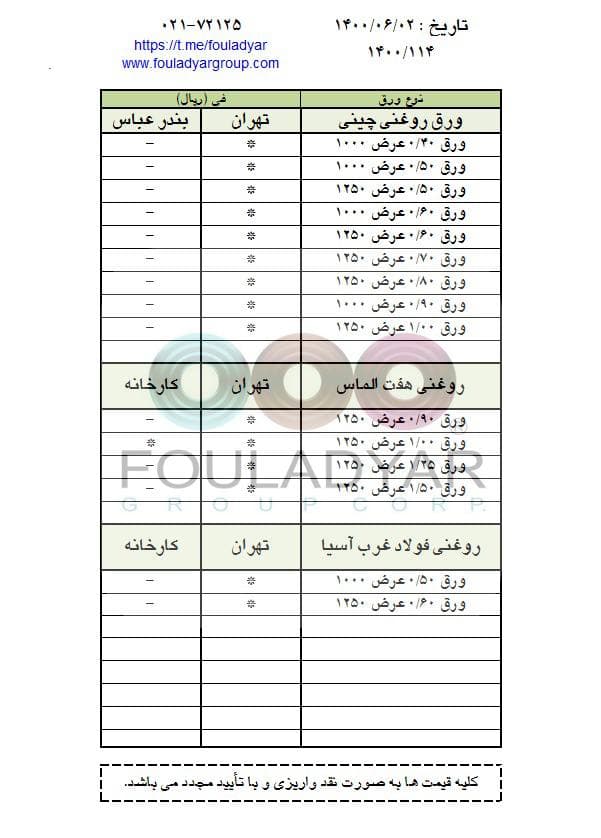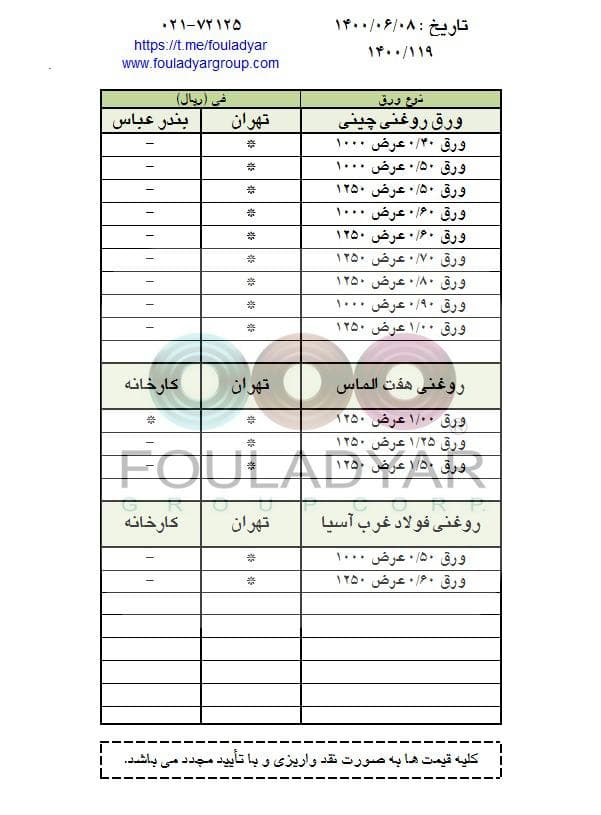#گروه_شركتهاي_فولاديار 🔸بزرگترین عرضه کننده ورقهای سرد،گالوانیزه و رنگی ☎️۰۲۱-۷۲۱۲۵ 🌐http://www.fouladyargroup.com/ 🆔https://t.me/fouladyar https://foolad۲۴. ...
