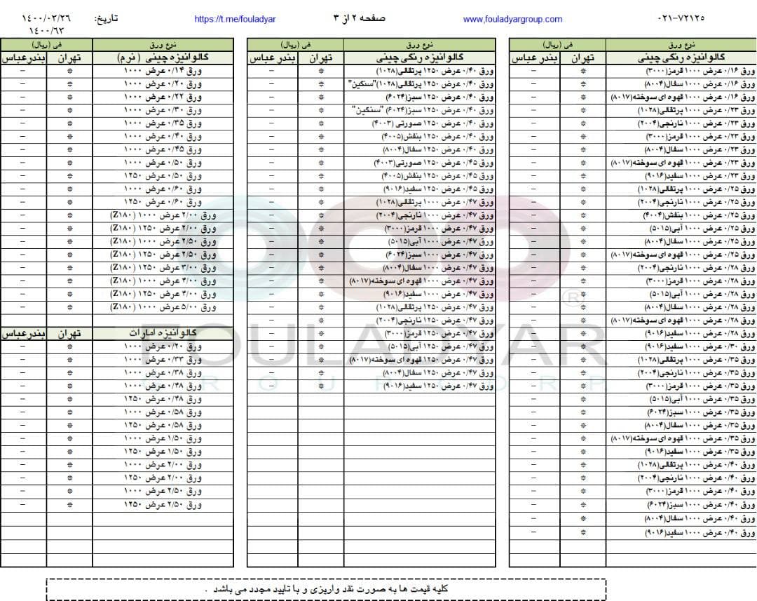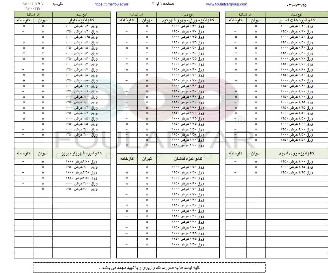 #گروه_شركتهاي_فولاديار 🔸بزرگترین عرضه کننده ورقهای سرد،گالوانیزه و رنگی ☎️021-72125 🌐http://www.fouladyargroup.com/ 🆔https://t.me/fouladyar https://foolad24 ...
