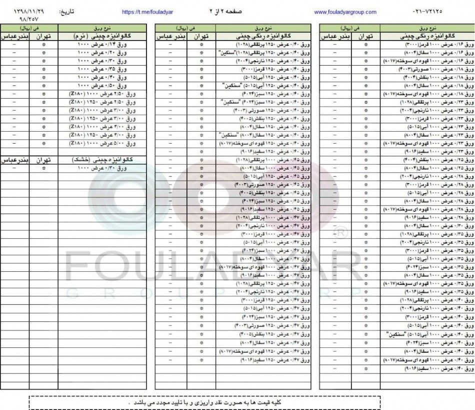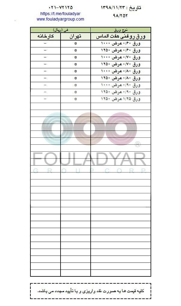 #گروه_شركتهاي_فولاديار بزرگترین عرضه کننده ورقهای سرد گالوانیزه و رنگی 02172125 http://www.fouladyargroup.com/ https://t.me/fouladyar
