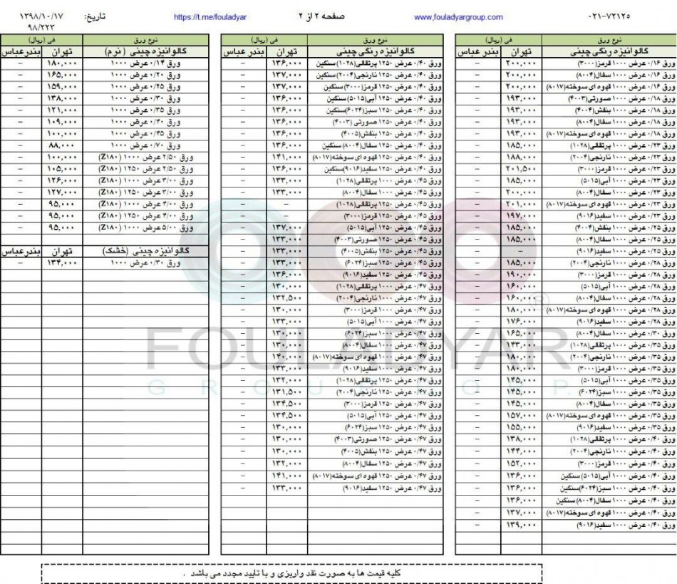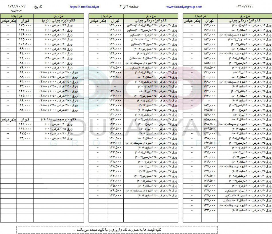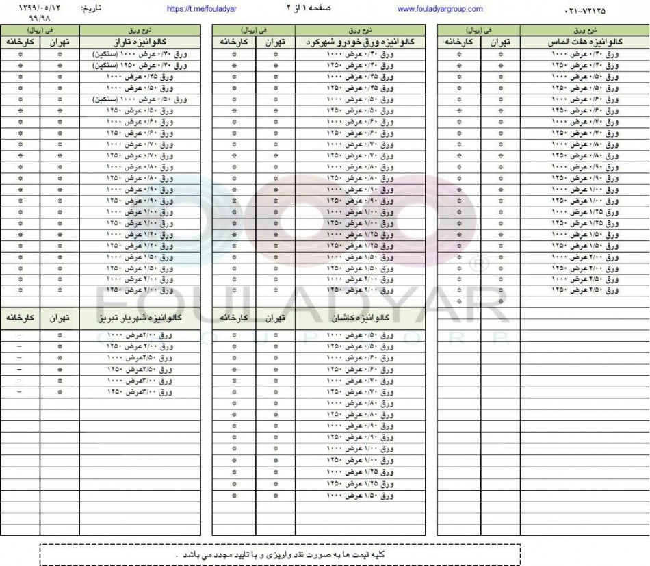 گروه شركتهاي فولاديار بزرگترین عرضه کننده ورقهای سردگالوانیزه ورنگی 02172125 http://www.fouladyargroup.com/ https://t.me/fouladyar