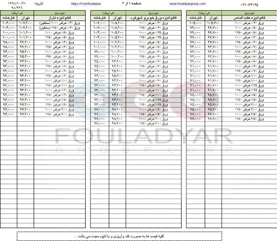 #گروه_شركتهاي_فولاديار بزرگترین عرضه کننده ورقهای سرد گالوانیزه و رنگی ۰۲۱۷۲۱۲۵ http://www.fouladyargroup.com/ https://t.me/fouladyar