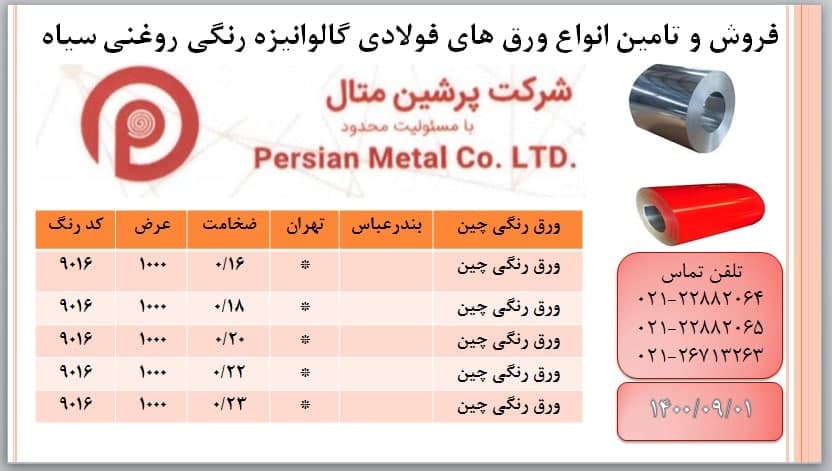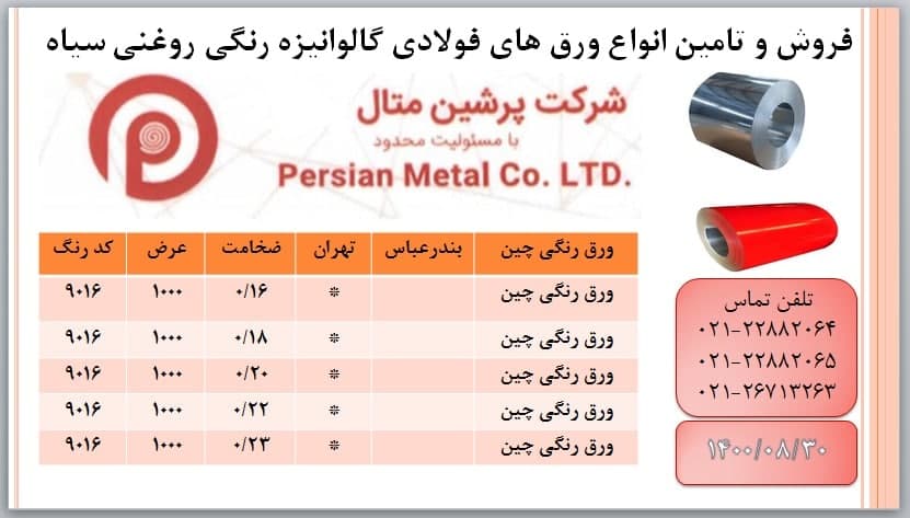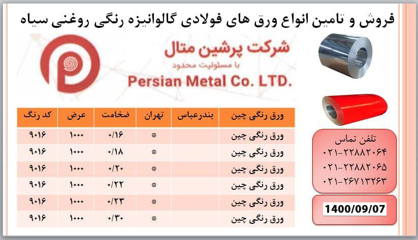 فروش تخصصی انواع ورقهای رنگی و گالوانیزه، روغنی و سیاه 📱09121005889 ☎️02122882064 ☎️02122882065 ☎️02126713263 ☎️02126713279