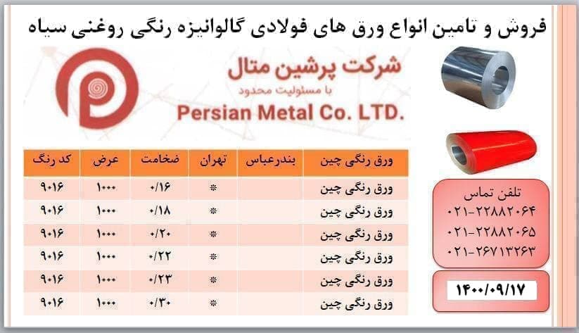 پرشین متال کیش فروش انواع ورقهای رنگی و گالوانیزه 02126713279 https://t.me/persianmetall