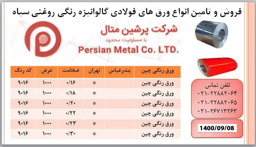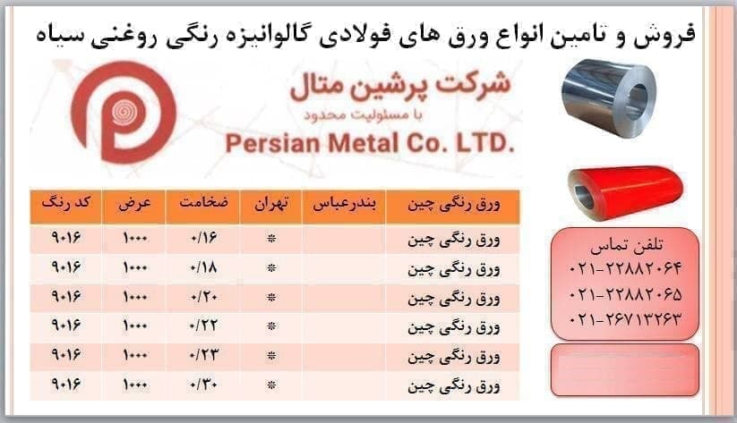 🔹فروش تخصصی انواع ورقهای رنگی و گالوانیزه، روغنی و سیاه 📱09121005889 ☎️02122882064 ☎️02122882065 ☎️02126713263 ☎️02126713279 🆔https://t.me/persianmetall