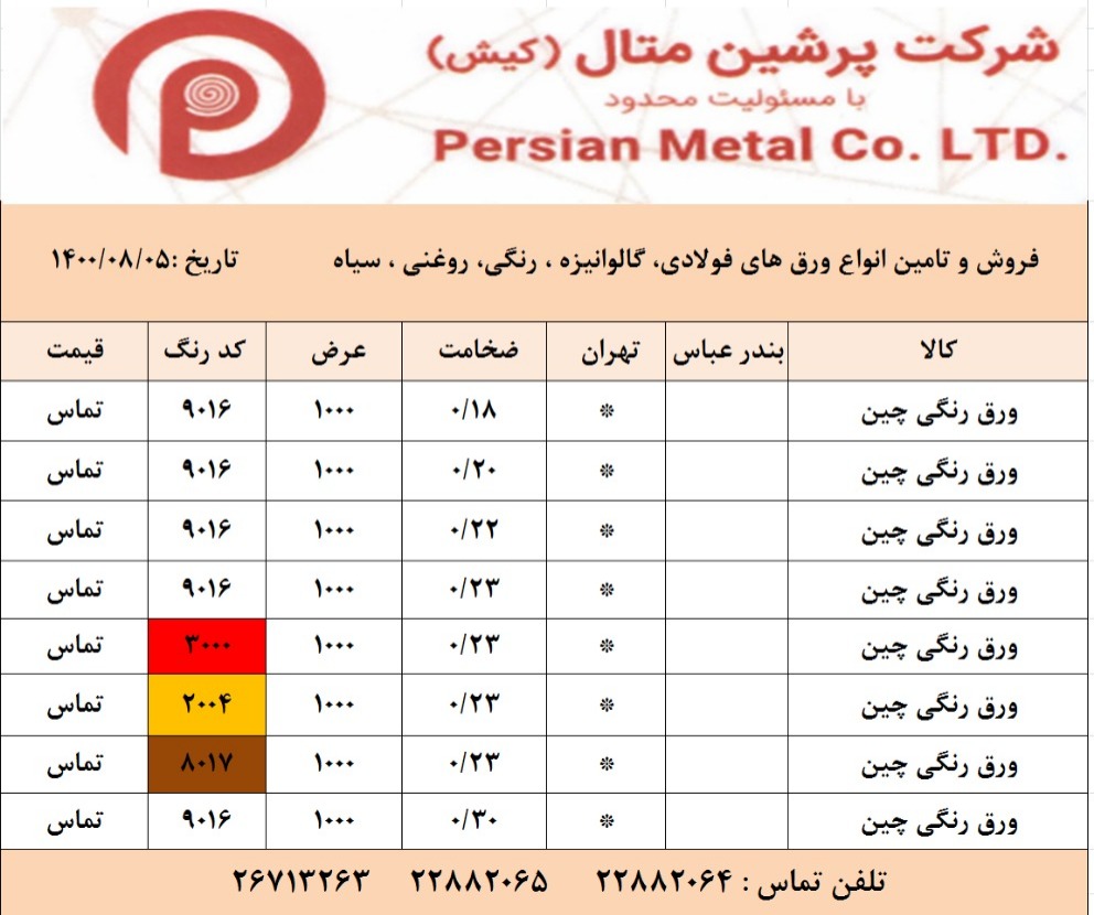پرشین متال کیش فروش انواع ورقهای رنگی و گالوانیزه 02122882064