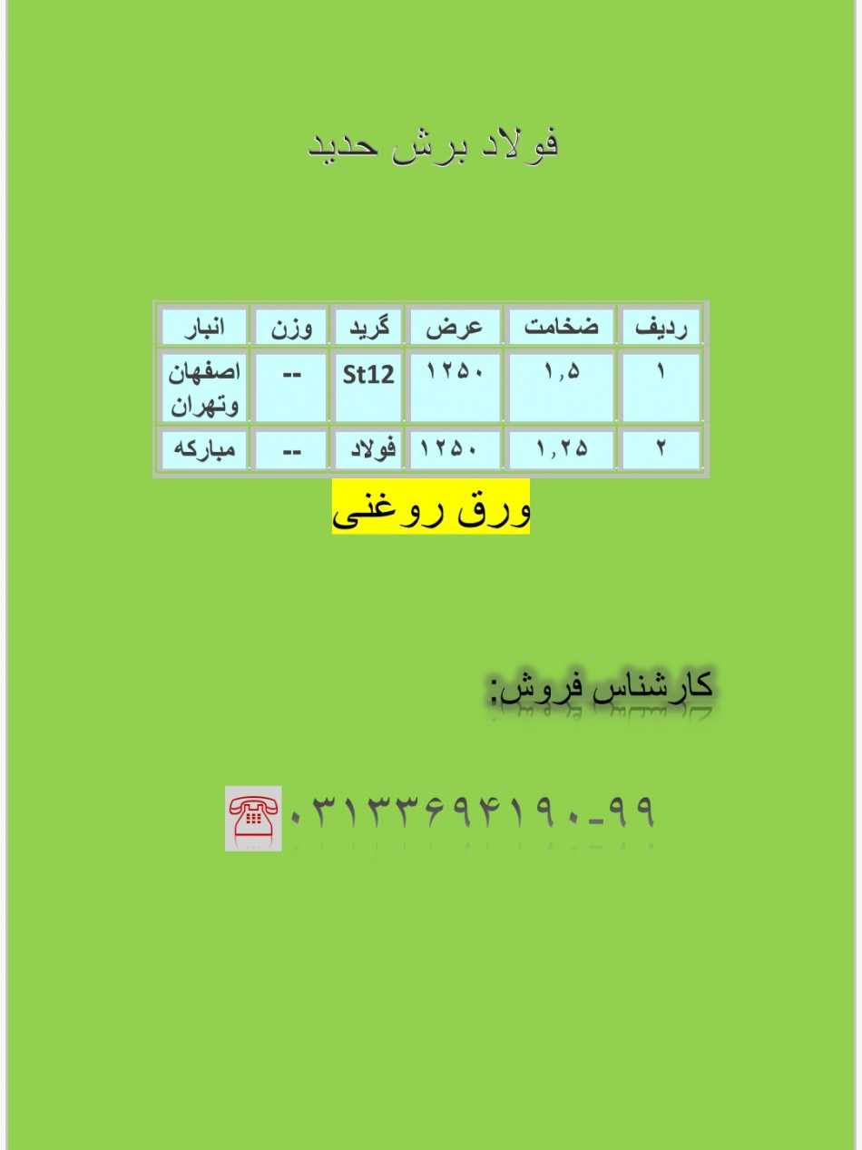فولاد برش حسابداری, [06.01.21 01:53] [Forwarded from فولاد برش حدید 99-03133694190 و 39-33720034] فروش ورق روغنی فولاد 1*1250————---st12 https://t.me/fo ...