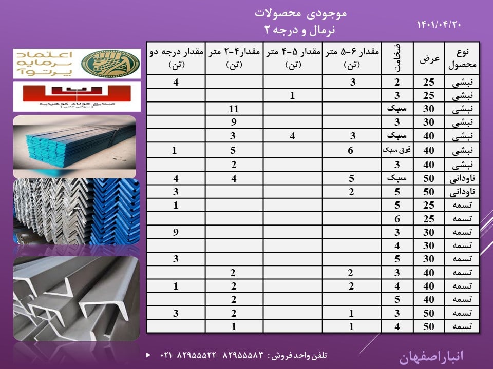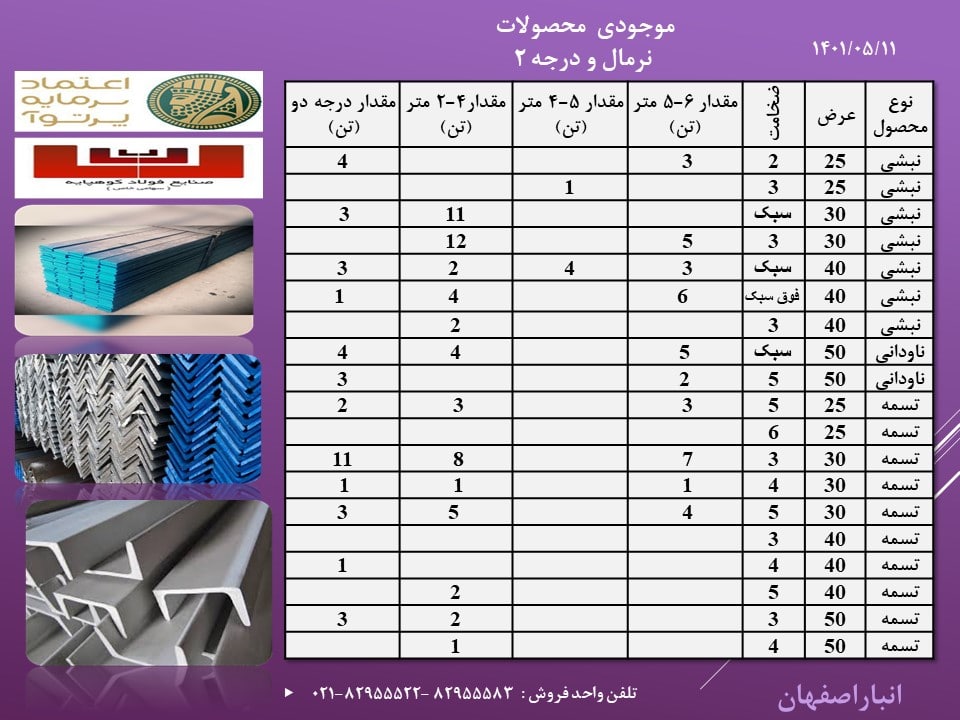 فروش محصولات استاندارد: نبشی 30سبک نبشی 40 سبک نبشی 40 فوق سبک ناودانی50سبک ناودانی 60سبک