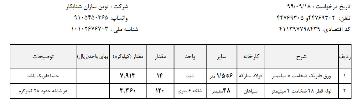 جهت مشاهده درخواستهای خرید کلیک کنید.صورت باری ثبت نشده است!