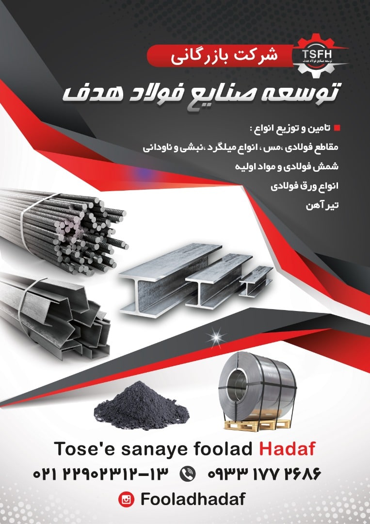 شرکت بازرگانی #توسعه_صنایع_فولاد_هدف 📌تامین و توزیع انواع : مقاطع فولادی ،مس، انواع میلگرد،نبشی و ناودانی انواع ورق فولادی،شمش فولادی و مواد اولیه،تیرآهن ورق ...