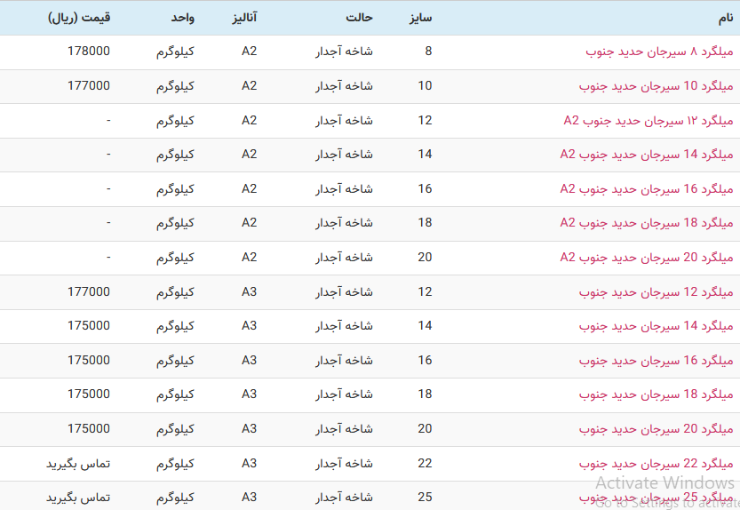 یکشنبه 27 تیر ماه 1400 📢 #قیمت_میلگرد_آجدار_سیرجان_حدید_جنوب ⏺ بدون تغییر نسبت به روز قبل بارگیری از کارخانه میلگرد 8 A2 قیمت 👈 18100 میلگرد 10 ...