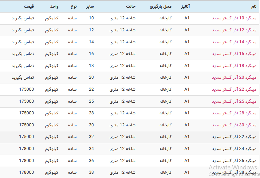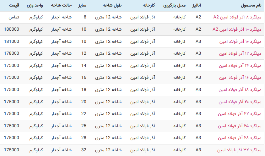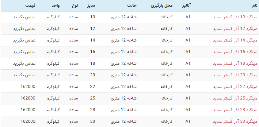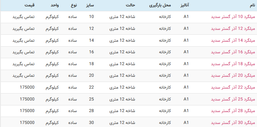 دوشنبه 28 تیر ماه 1400 📢 #قیمت_میلگرد_ساده_آذر_گستر_سدید ⏺ بدون تغییر قیمت نسبت بهروز قبل بارگیری از کارخانه میلگرد 22 A1 قیمت 👈 17500 میلگرد ...