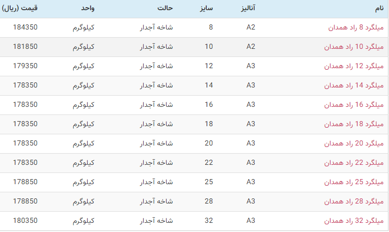 شنبه 26 تیر ماه 1400 📢 #قیمت_میلگرد_آجدار_راد_همدان بارگیری از کارخانه میلگرد 8 A2 قیمت 👈 18435 میلگرد 10 A2 قیمت 👈 18185 میلگرد 12 A3 ...