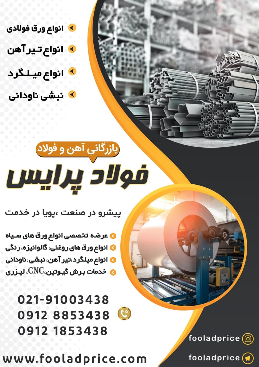 💢بازرگانی فولاد #پرایس 🔹عرضه تخصصی انواع ورق سیاه ،روغنی، گالوانیزه و رنگی ،میلگرد،تیرآهن، نبشی ،ناودانی، پلیت،بولت 🔸ارائه خدمات برش گیوتین،cnc، لیزری ...