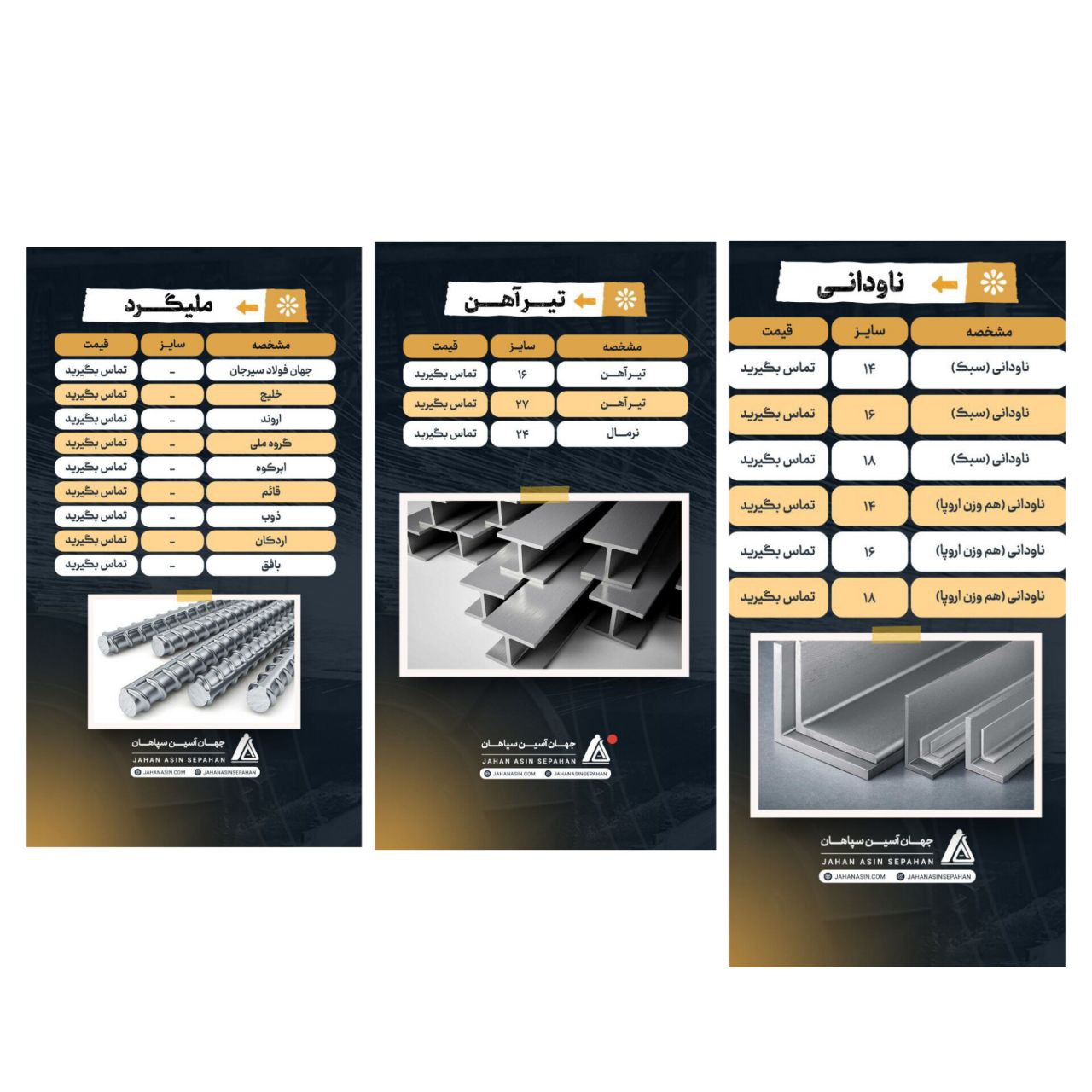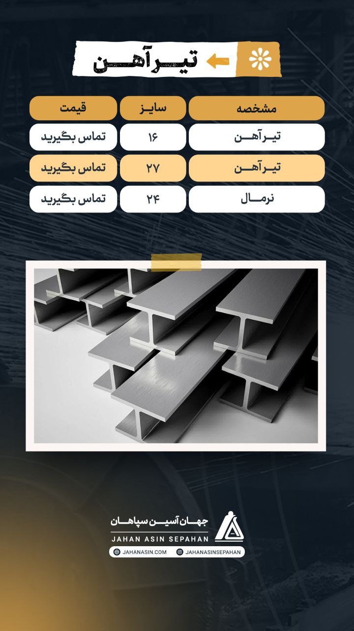 💠#شرکت_جهان_آسین_سپاهان ✅ فروش انواع محصولات فولاد ✅انواع تیر آهن ✅ورق گرم مبارکه و اکسین ✅انواع میلگرد (زاگرس . سیرجا ...