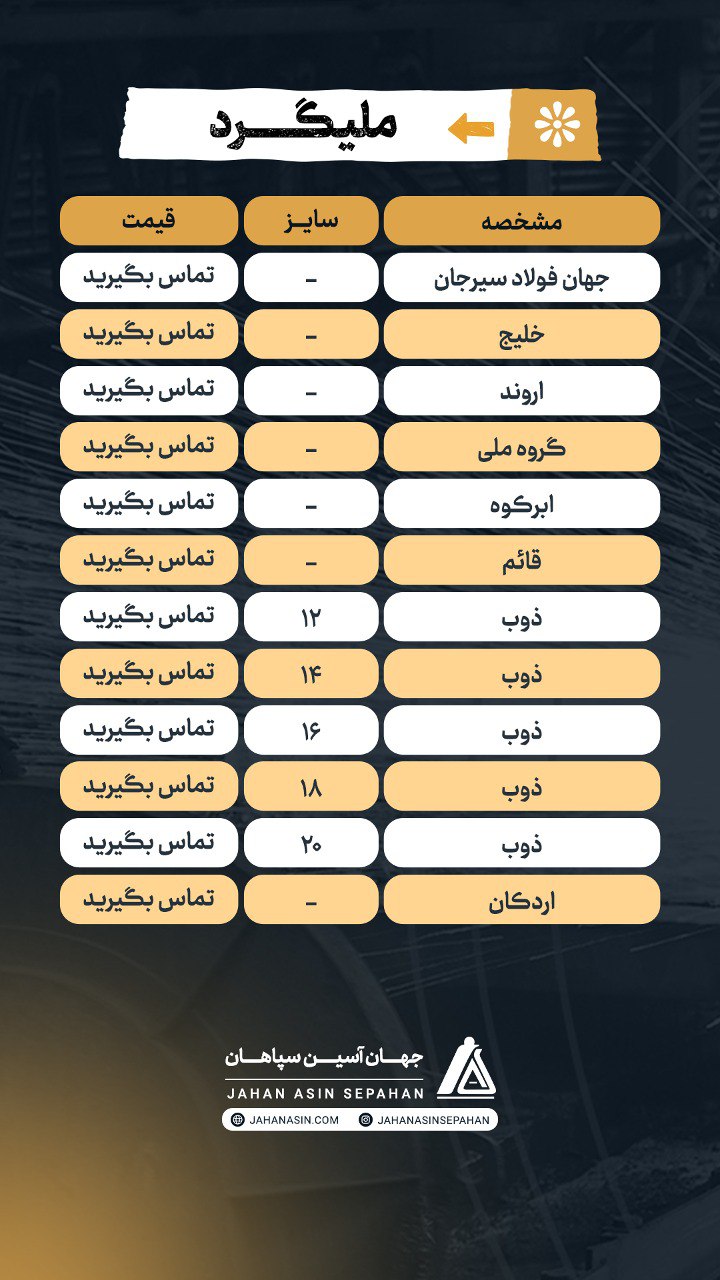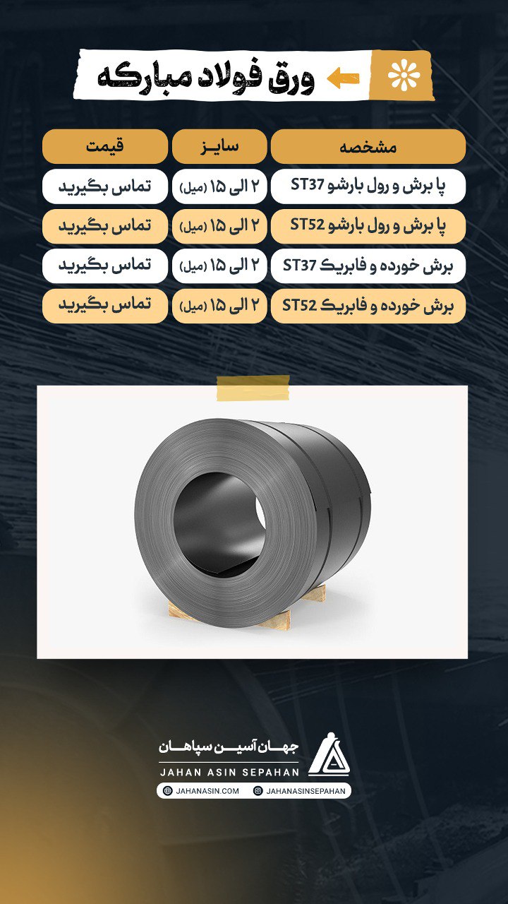 💠شرکت جهان آسین سپاهان ✅ فروش انواع محصولات فولاد ✅انواع تیر آهن ✅ورق گرم مبارکه و اکسین ✅انواع میلگرد (زاگرس . سیرجا ...